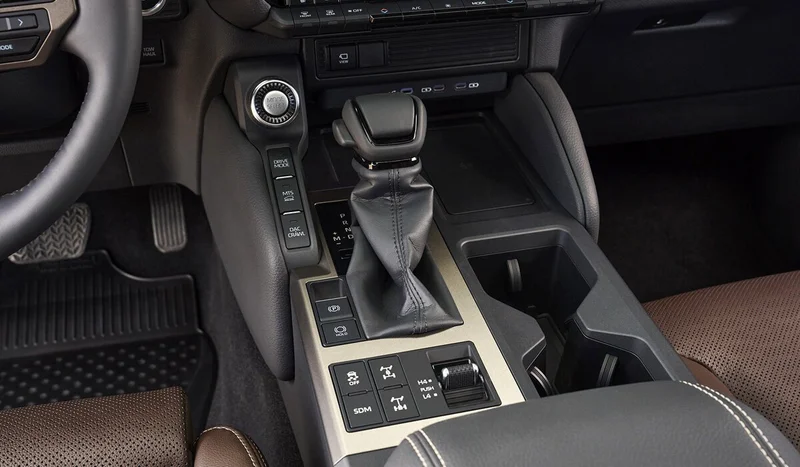 Looking further, the Prado isn't shy about its off-road roots. It stays true to permanent all-wheel drive, a self-locking center differential and a reduction gear system. It delivers on its promises by offering you center locks and a rear cross-axle differential. One of the iconic elements - the Crawl Control off-road cruise control - has not left the Prado arsenal. In addition, the Multi-Terrain Select system pleases with a more extensive set of modes for different driving conditions, and interestingly, it works even in low gear. And, of course, on the crest of a technological wave, Prado replaced the hydraulic power steering with an electric one to enable the lane keep function.