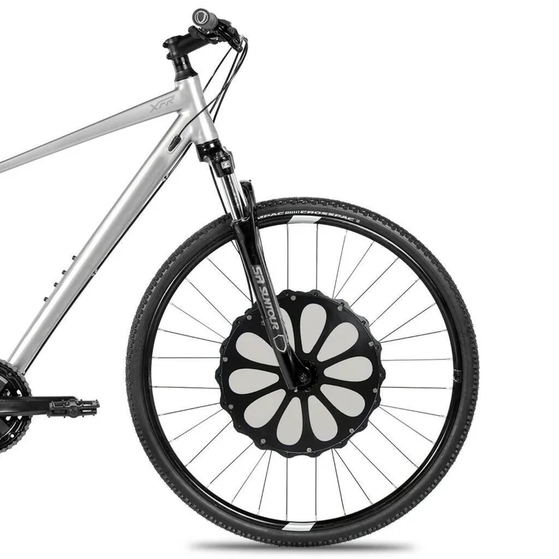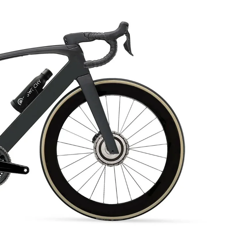 The first kit, the most basic, is called Switch One and is fully integrated into the front wheel of the bike. Of all the options offered, it is the easiest to install: you just need to replace the original wheel with a wheel provided by an American company and connect a small on-board computer mounted on the steering wheel.