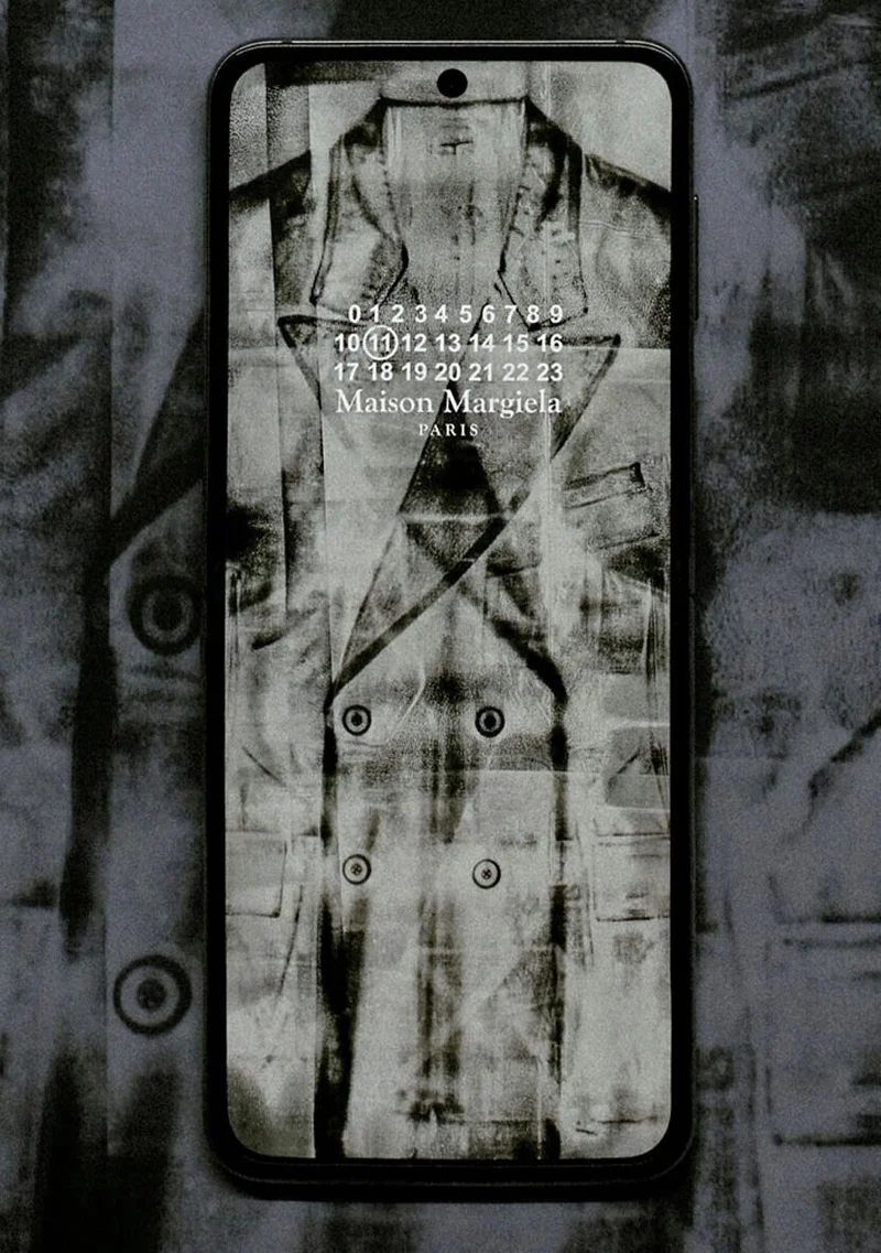 What makes the Galaxy Z Flip5 clamshell model unique is its solid glass body, which allows you to see the inner structure of the Maison Margiela jacket. The translucent effect reveals delicately crafted details that combine technology and fashion.