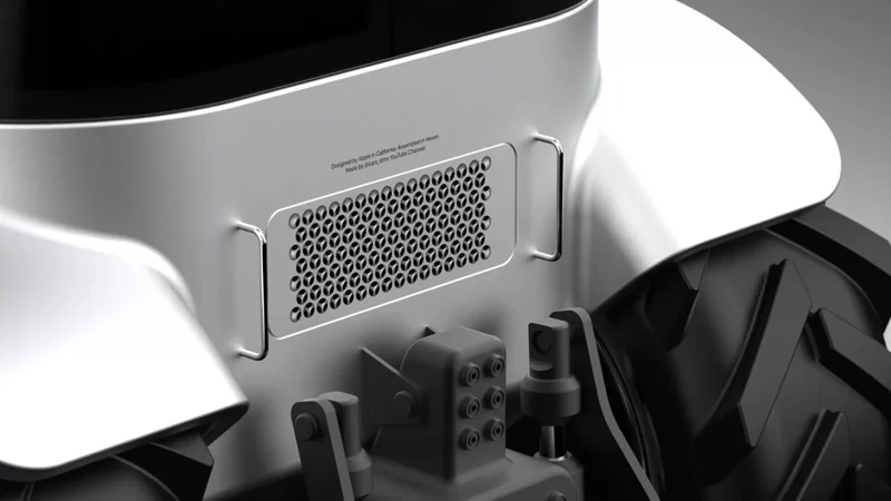 This tech-savvy exploration comes with a sense of humor that's hard to ignore. The Tractor embodies the minimalist style typically associated with Apple products, drawing particular inspiration from the controversial design of the Mac Pro with its distinctive "cheese grater" aesthetic and, to a lesser extent, the iPhone. Its appearance showcases clean lines with rounded edges, slim LED lighting and a prominent display of the iconic Apple emblem on the front panel.