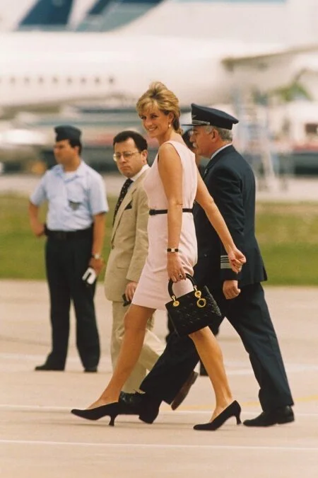 In 1995, the then first lady of France, Bernadette Chirac, presented Princess Diana with a dainty stitched leather handbag with a dangling letter charm from Dior. The pattern on the leather was taken from the Napoleon III chairs that the brand used in its first show in 1947. Despite its status as an expensive gift given to royalty, the accessory quickly caught the public's eye and sparked a desire to have their own version. In the end, Dior named the bag "Lady Dior", after Princess Diana, who died in Paris in 1997.