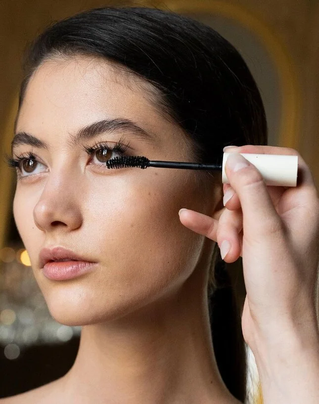 At the Victoria Beckham show, head makeup artist Farah Homidi took a bold approach. She did not glue artificial eyelashes, but created a “leather” effect with the help of a designer development - Vast Lash mascara, which gives large volume and a velvety texture without gluing or the formation of lumps.
