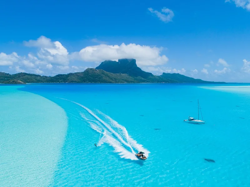 Wake surfing in Bora Bora.