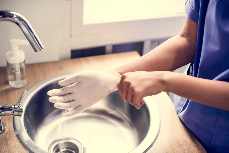 Rubber gloves for housework. Always try to protect your hands whenever possible when cleaning or washing dishes. Overexposure to hot water and chemicals can strip the skin of its natural oils, drying it out and causing it to crack.