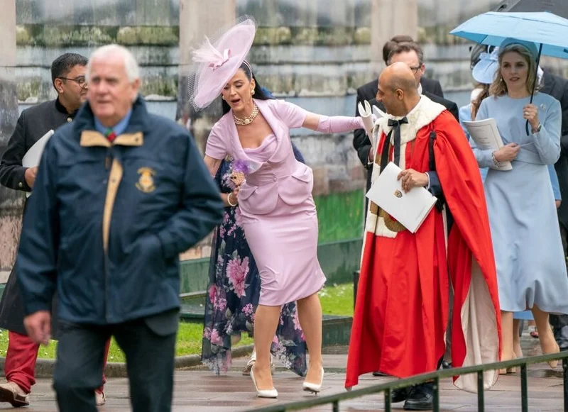And Perry just appeared at Westminster Cathedral in a lavender suit from Vivienne Westwood and a voluminous hat to match. The size of the headdress caused inconvenience to the singer’s neighbors, and later social network users were surprised how she was not immediately taken out of the audience. Moreover, Katie herself suffered a little from the hat; before the coronation began, she could not find a place for a long time because of the wide brim, she was caught on camera and, in the end, the video of her was shared among Internet memes.