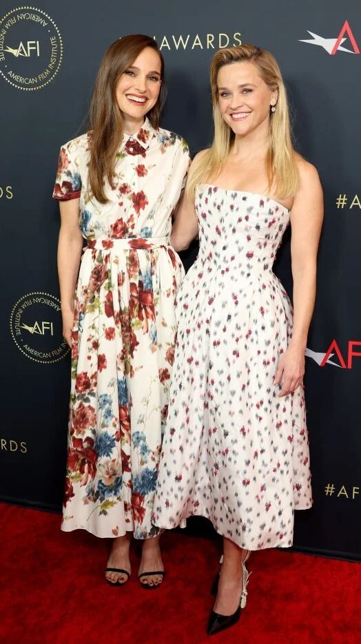 They say the best minds think in unison, but they also dress alike. Natalie Portman and Reese Witherspoon caught an unplanned “twin” moment on the red carpet at the American Film Institute Awards.