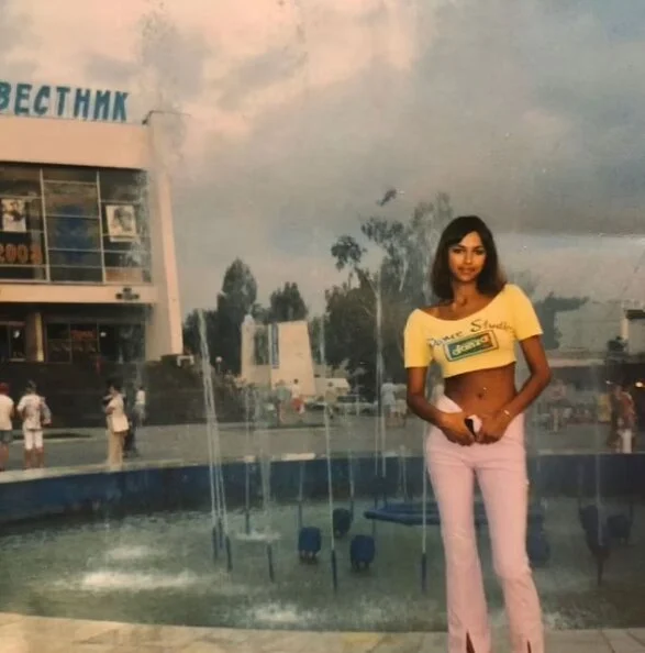 She captioned two photographs in which Irina poses as a teenager in a yellow crop top near a fountain and on a motorcycle: “16,” a reference to her age at that time.