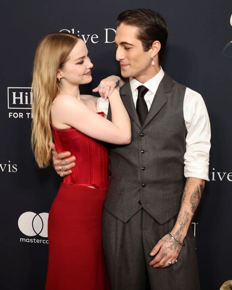 Singer and actress Dove Cameron (Descendants franchise) has found her “best boyfriend” in Damiano David. The couple made their red carpet debut at the pre-Grammy music awards party.