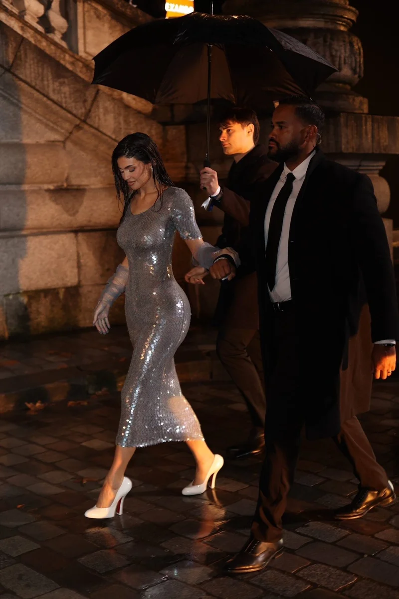 On the final day of Fashion Week, the overseas guest attended the Maison Margiela show accompanied by her sister Kim and mother Kris. The founder of Kylie Cosmetics embodied the "mermaid style" in a gray ice dress with sequins that created the illusion of scales. At the same time, Jenner took advantage of the "wrong shoe" theory and wore white loafers with a rounded toe. The unexpected combination did the trick - the shoes contrasted strongly with the neutral dress and attracted attention.