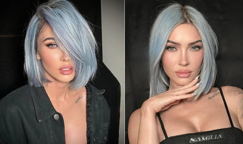 She's calling her new look "Jedi era." Whether Mercury retrograde is to blame or Megan Fox wouldn't be herself, but the actress debuted a new hair color on social media the other day, testing another palette shade from her list. The actress shared three snaps showing off a sleek bob in a light blue color. Accentuating the new hairstyle were bronzed smoky eyes and super-shiny lips with a crisply lined contour. The "blue" reboot also included lighter strands framing her face and dark brown roots. Meghan thanked her team of stylists, including Dimitris Giannetos and Jenna Christina, for the new look, and commented on her new look, "Entering her Jedi era.".