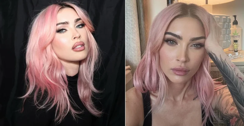 Before turning to a cool, blue, color, Meghan went with pink hair for two months. At the People's Choice Awards, she presented one of the nominations with colleague Joe Manganiello with a long, wavy version. A little later, she repeated it at an event in Las Vegas.