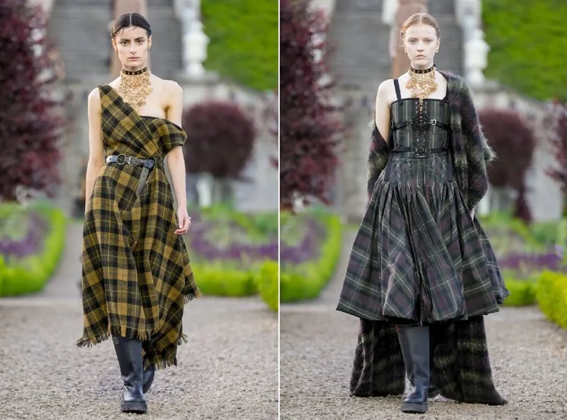 Dior immersed itself in the traditions of Scotland and its rebellious history late the night before, presenting a “cruising” 2025 collection with punk-inspired tartan, ringlets and magical evening gowns.