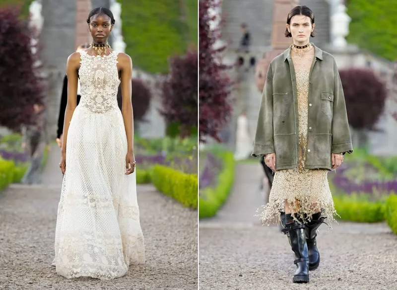 Haute couture is increasingly taking to the catwalk, showcasing the latest creations as part of “cruises” to picturesque destinations around the world. After Athens, Seville and Mexico City, this year Dior settled at the historic Drummond Castle near Crieff in Perthshire, central Scotland. The French brand's muses Jennifer Lawrence, Anya Taylor-Joy, Rosamund Pike and Laetitia Casta, as well as an army of waiters in elegant black kilts were among the spectators, who were seated in the front row against the background of the castle's gardens. Instead of a catwalk, a stone staircase led directly from the castle, where the models descended to the sound of bagpipes to the audience and then disappeared behind manicured hedges and trees.