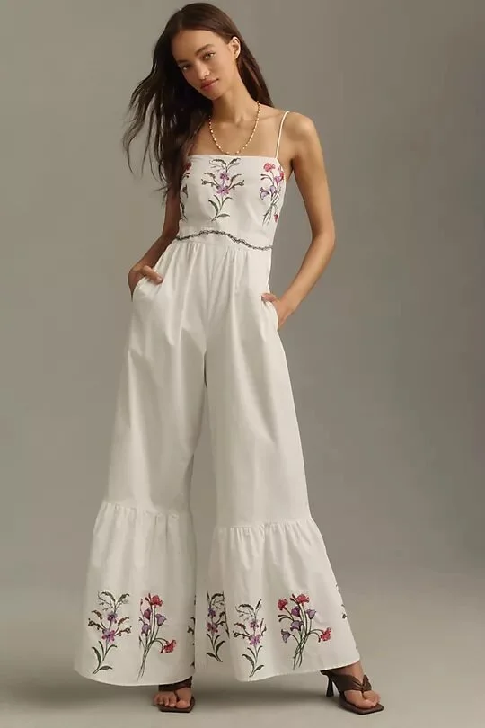 The whole family can feel like flower children at once. If you are going, for example, to a music festival or on a trip along the Golden Ring, you will find models with embroidered flowers on the bodice or on the bell-shaped trousers useful. If we abstract from the 90s, then the first overalls in this “floral” style appeared in the 70s, when young people preferred songs with a guitar by the fire or evening discos in pioneer camps. By the current decade, the overalls have adapted due to delicate details and light shades.