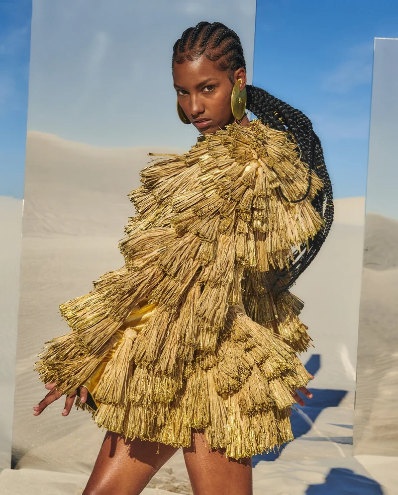 Young African artists also participated in the partnership. Nika Mtwana and Cassius Kumalo created enigmatic images for various T-shirts, tops and dresses. Cameroonian Enfant Precocque depicted Simba on coats, suits, dresses and bags. The collection became a kind of confirmation of identity and evolution of Rousteing as a person and a creative unit. “As an adopted child, I see myself as Simba. A lonely lion cub who created his own unique family while searching for the truth about his origins,” the designer said. “I integrate this mixture of resilience and heritage into my designs for Balmain.”