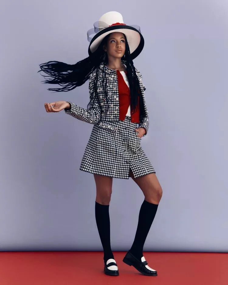 Dionne Davenport's checkered two-piece skirt and cropped jacket, paired with a white T-shirt and thin red cardigan, complemented by black and white loafers and a voluminous hat, is an example of sophistication, playfulness and boldness. The author of the image belongs to costume designer Mona May, who, with a small budget, had to show miracles of resourcefulness. And she found nothing better than to visit consignment shops and look through designer catalogs. As a result, we got a style for "real" girls, and not just characters from a movie story.