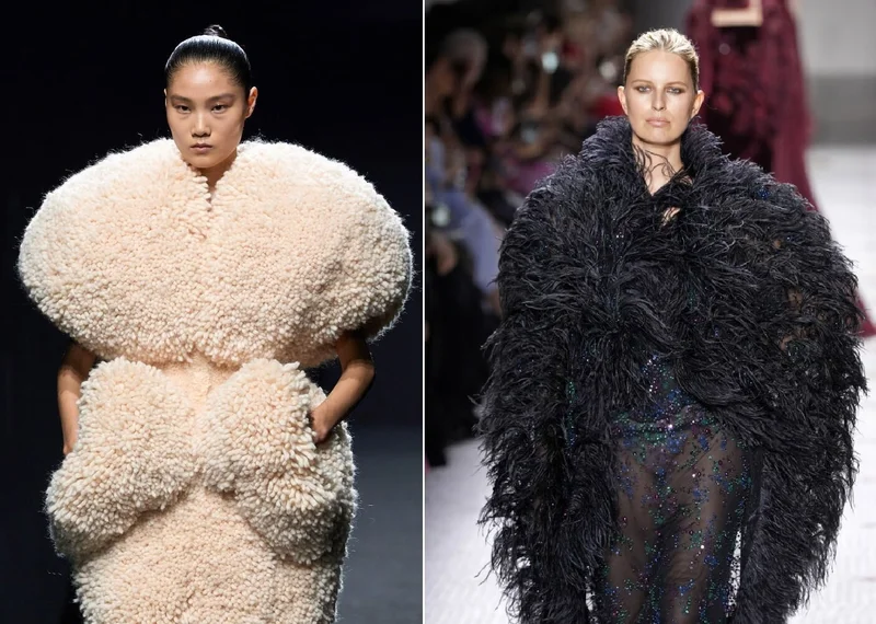 There was no one among the famous designers who would ignore fur in outfits for cool weather. It can be small inclusions, like on the belt. Or various trims that match the textures of the accompanying design. Simone Rocha started promoting this idea, adding brown fur with different pile lengths to transparent materials. If we talk about more complete looks, fur is present mainly in coats. Michael Kors has powder pink, and Burberry has earth tones.