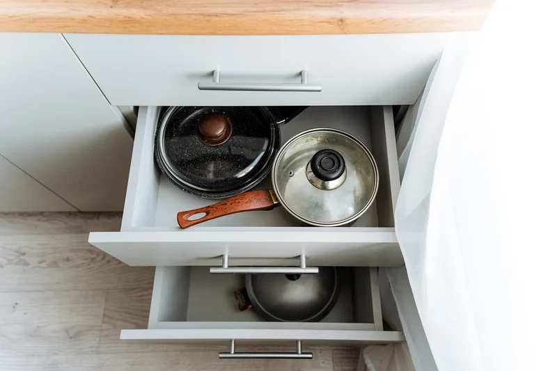 Storing pans in the kitchen.