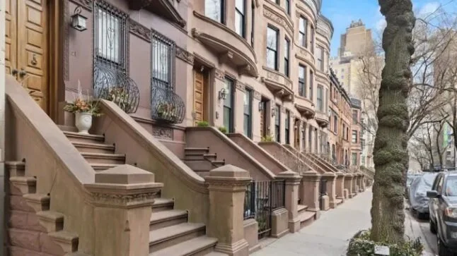 The famous red brick townhouse is located in Manhattan.