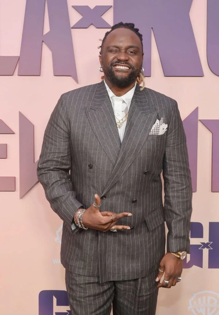 The star of the action film "Bullet Train" (2022) continues to confidently venture into the niche of big-budget projects. In "Godzilla x Kong" he played the lead role along with Hall and Stevens. At the show Brian Tyree came dressed as a true gentleman - a white shirt, gray suit-double in a thin white stripe and color-matched breastplate made the 41-year-old actor "Mr. Elegance". And this unspoken title did not even ruin Henry's predilection for numerous jewelry on his fingers and ears. All of them were selected in the general range of the image. Well, and dreadlocks painted in pastel colors added a smiling "Bernie Hayes" (Henry's character in the movie) a note of fun informality.