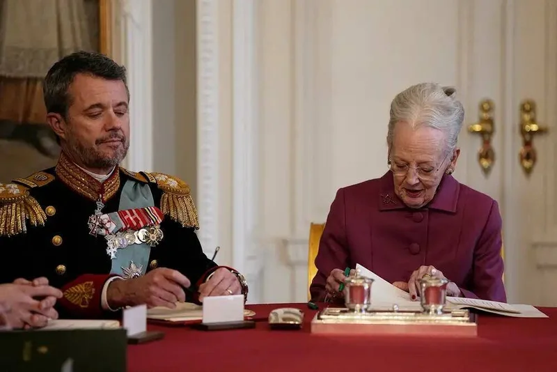 The succession took effect at a Council of State held at Christiansborg Castle, where Parliament met, after 83-year-old Margaret II signed the abdication decree after more than half a century on the throne.