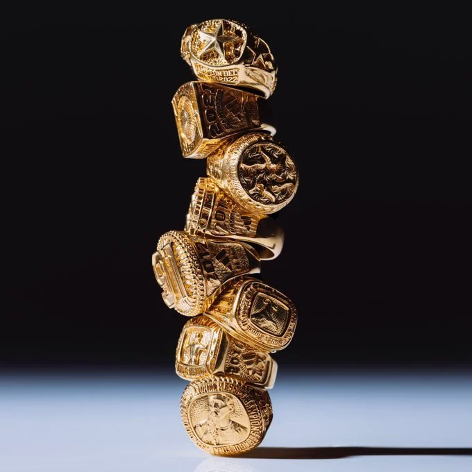 The gold rings will be auctioned off at the end of 2023, with the proceeds going to charity.